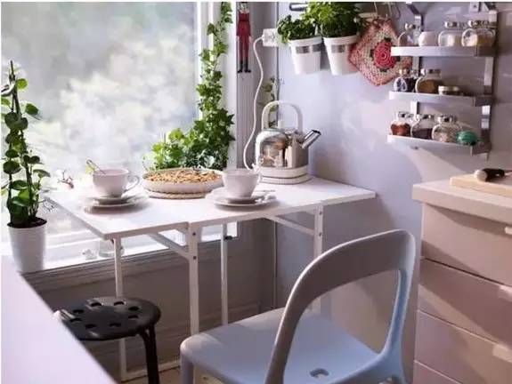 右上角的兩個小盆栽 它們將成為一道風景線 小餐桌的空間就省下來了