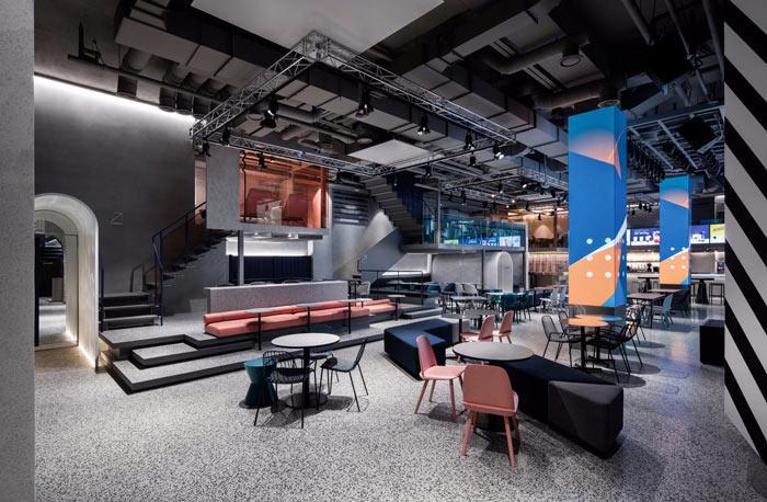 辦公室吧臺裝修:大家在這里匯聚喝喝咖啡、聊聊天,也是一種不錯的生活,藝術來源于生活,在傳媒行業更是如此,藝術與生活可以在空間并存。 企業擁有各種各樣不同的團隊,各個團隊集合在這里,相互認識、相關交流,讓思想的火花可以一直延續下去。