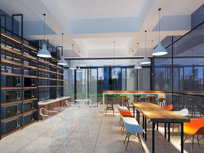 辦公室茶水間設(shè)計(jì):員工在這里休息、娛樂,這里采用的是工業(yè)風(fēng)的設(shè)計(jì),目的就是希望員工在這里沒有任何壓力,讓員工在這里得到暫時(shí)的安寧。