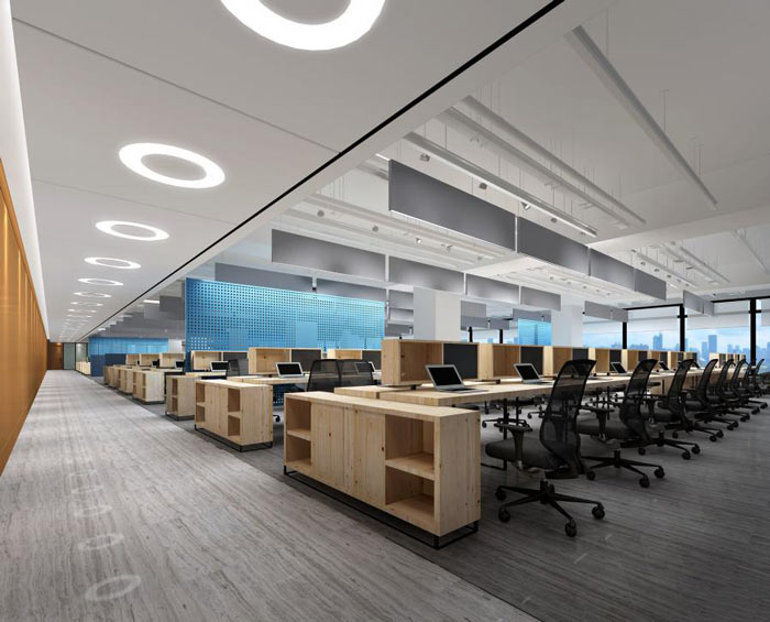 辦公室辦公區(qū)域設(shè)計(jì):開放式的辦公區(qū)域,設(shè)計(jì)師采用加長版的辦公桌,在滿足辦公需求的同時(shí),為企業(yè)打造人性化的辦公空間。
