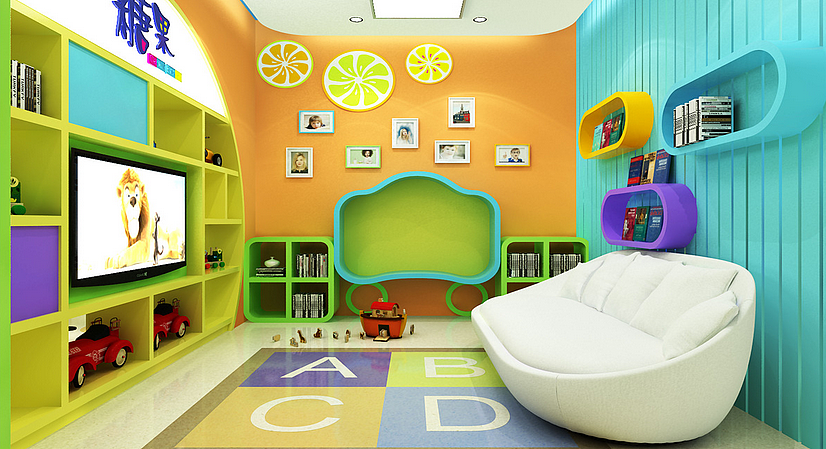 第一:設計作風一定要合適小孩子的年齡特征,小孩子對顏色、幾何圖形等都很感興味,這些東西都很容易吸收他們的留意,所以,墻面、吊頂、家具等能夠注重外型的卡通化,顏色的強比照化。