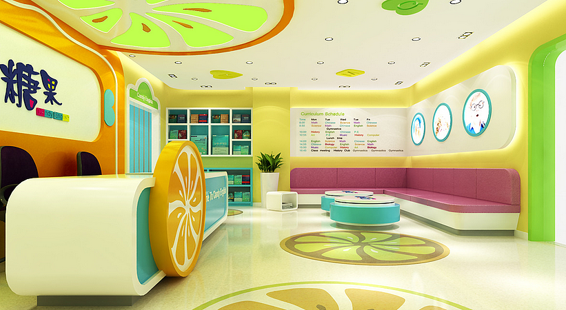 另外,幼兒園裝修時色系應選擇暖色為主,孩子對顏色是很敏感的,比方課堂的眼色要盡量的平和些,其他游玩的中央顏色多元一些,鮮艷亮麗一些就行。還有幼兒園裝飾設計中飾物很重要,能夠添加些花鳥魚蟲的,讓孩子能體驗下自然,如今孩子跟大自然接觸較少,家長都是仔細呵護的,都是寶貝,所以接觸到的自然事物是有限的,也培育孩子愛心和仔細,培育興味喜好。