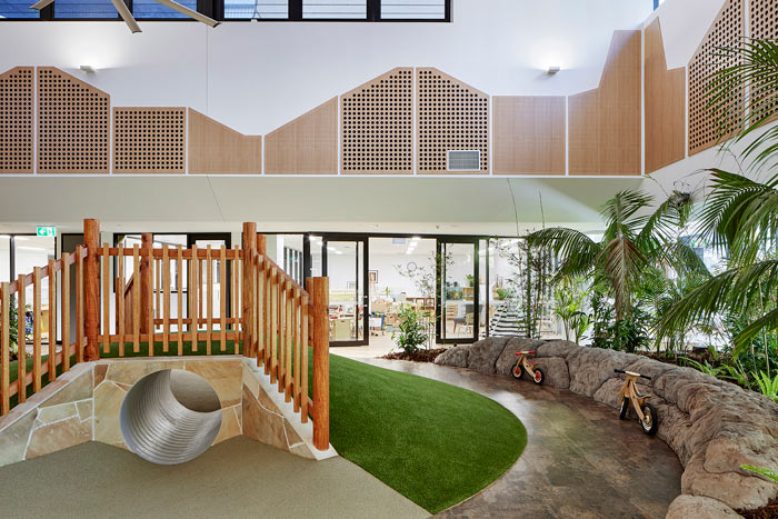【早教中心裝修廳設(shè)計(jì)】自然區(qū):這里還原了很多自然屬性,孩子對于世界的認(rèn)識是初步的,設(shè)計(jì)師希望讓孩子在這里逐步去了解自然,讓孩子通過自己不斷的發(fā)現(xiàn),激發(fā)孩子的想象力。