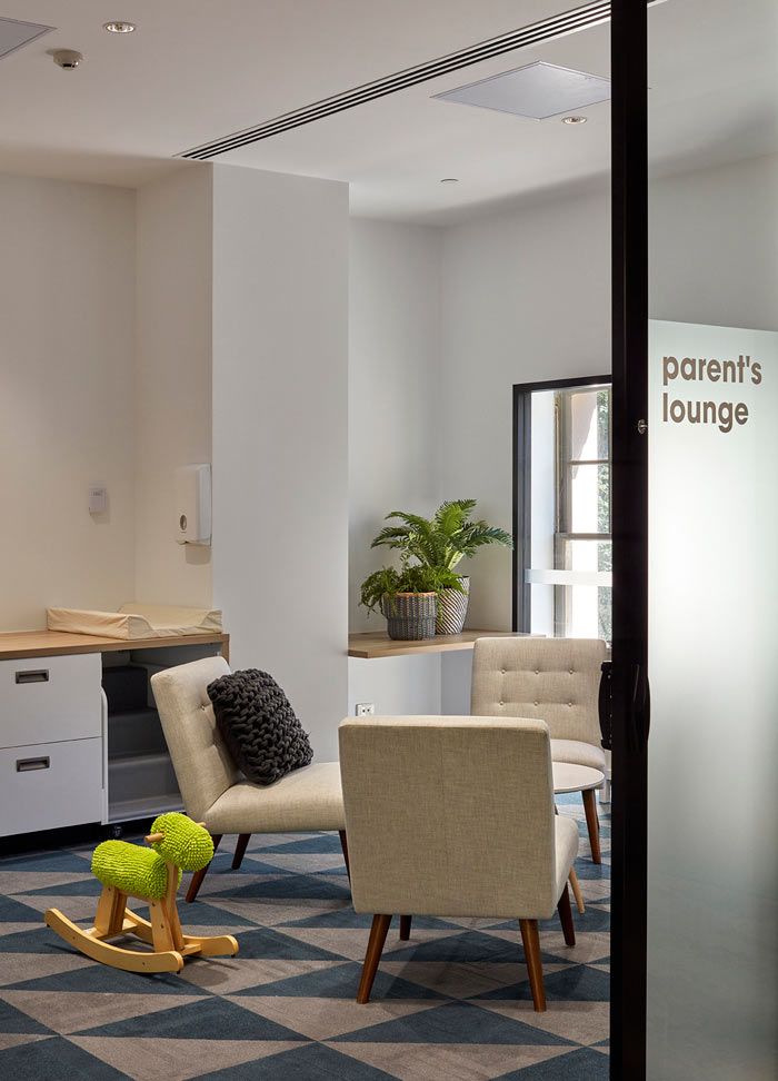 【早教中心裝修廳設(shè)計(jì)】交流區(qū):這里是家長與老師交流的區(qū)域,在這里老師們會(huì)定期向腳掌匯報(bào)孩子的狀況,讓家長對孩子的進(jìn)步了如指掌,讓家長放心、安心。