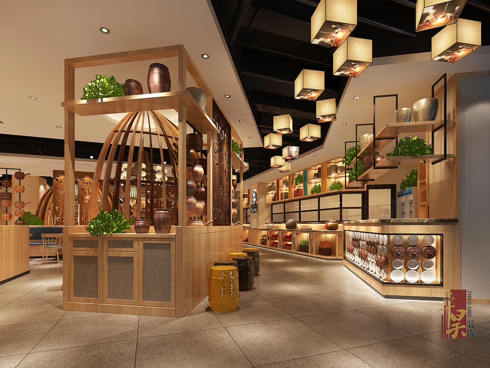 長沙餐飲門店裝修設(shè)計需具有充分的構(gòu)想及合理性,其中店堂裝潢設(shè)計的優(yōu)劣,廳堂的高度是否合理,燈光照明是否合理,店堂面積的大小,都直接影響飯店成功經(jīng)營的因素。因此作為飯店的前廳都應(yīng)寬敞、明亮。其高度應(yīng)不低于3米。