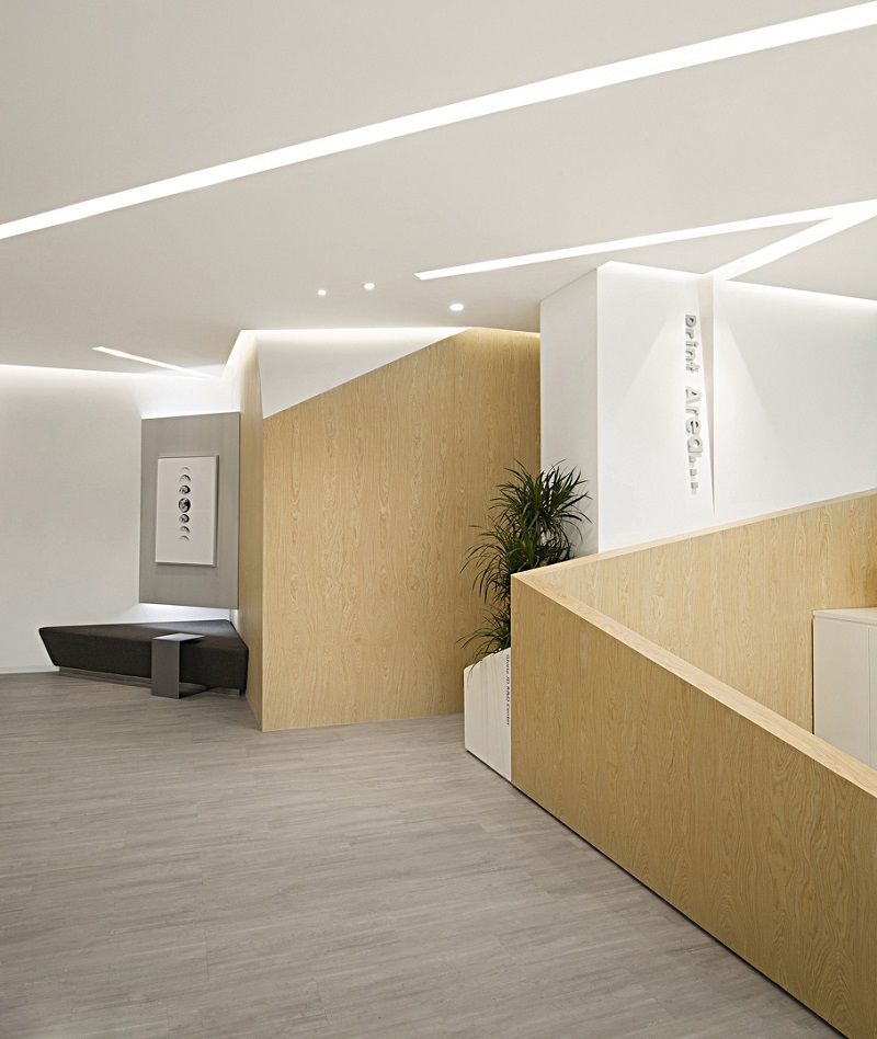 一個被光影分割的空間,明亮而富有創意。木紋的搭配有帶有一絲穩重。