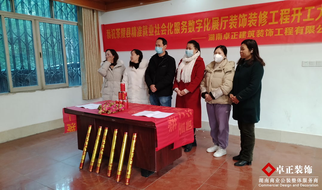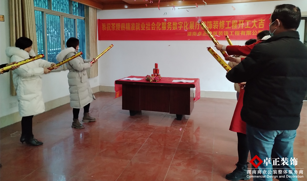 該數(shù)字展廳裝修工程項(xiàng)目是湖南卓正裝飾公司為茶林縣精準(zhǔn)就業(yè)社會(huì)化服務(wù)數(shù)字化展廳空間從設(shè)計(jì)、消防、施工一站式整裝工程,根據(jù)中國傳統(tǒng)文化選擇黃道吉日已于日前開工,值此春風(fēng)拂柳,萬物復(fù)蘇的良辰美景之時(shí),湖南卓正裝飾感謝茶林縣精準(zhǔn)就業(yè)社會(huì)化服務(wù)展廳公司對我們的信任支持,并熱烈祝賀茶林縣精準(zhǔn)就業(yè)社會(huì)化服務(wù)數(shù)字化展廳裝飾裝修工程開工大吉,預(yù)祝項(xiàng)目工程完滿峻工!